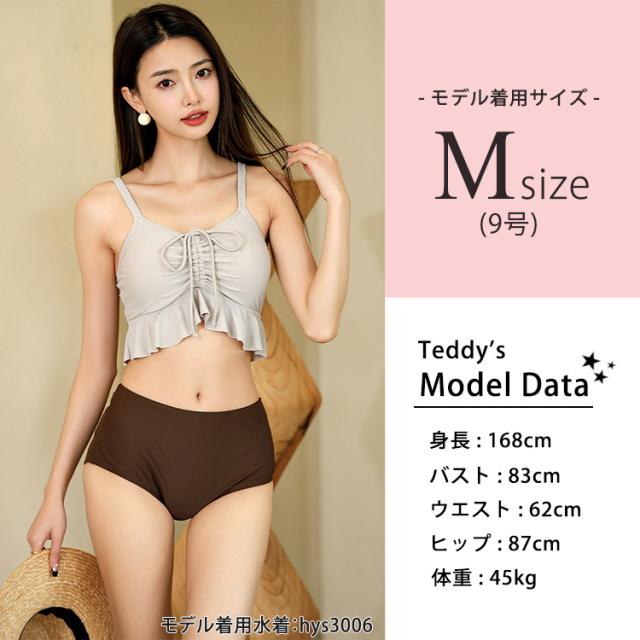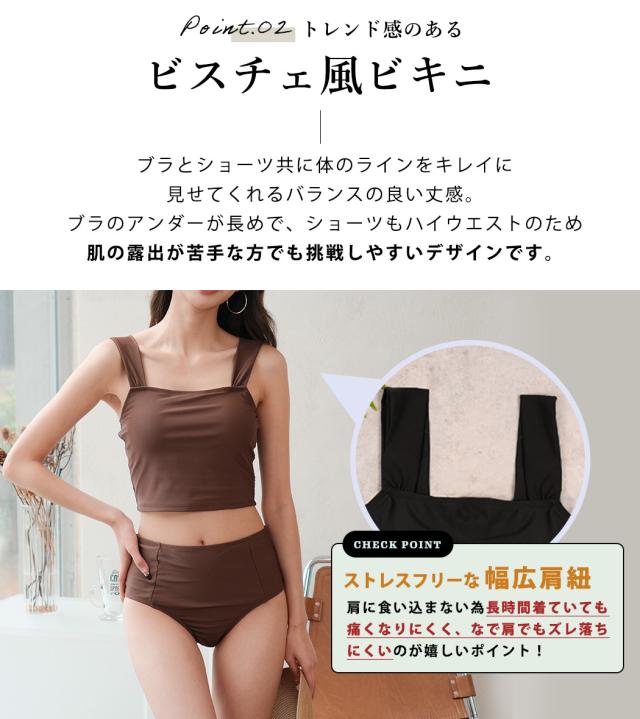 シンプルながらこなれ感もあり、肌の露出が少ないデザインが嬉しい3点セット水着。
