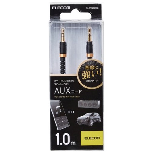 エレコム AX-35MS10BK AUXケーブル φ3.5オス-φ3.5オス 高耐久 スリム 1.0m ブラック
