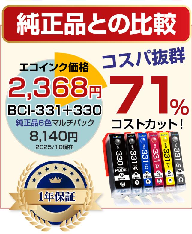 インク成分:BCI-330 / 330XL /顔料インク BCI-331 / 331XL /染料インク