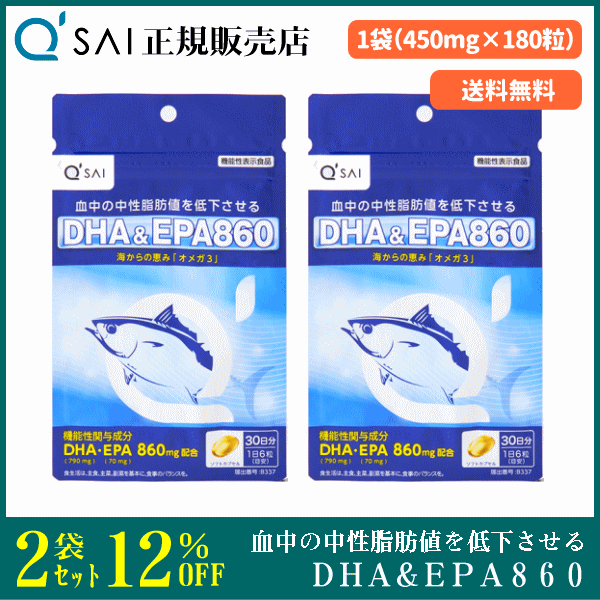 キューサイ DHA&EPA860 450mg×180粒 2袋まとめ買い +おまけ付 サプリ 機能性表示食品 血中の中性脂肪値を低下