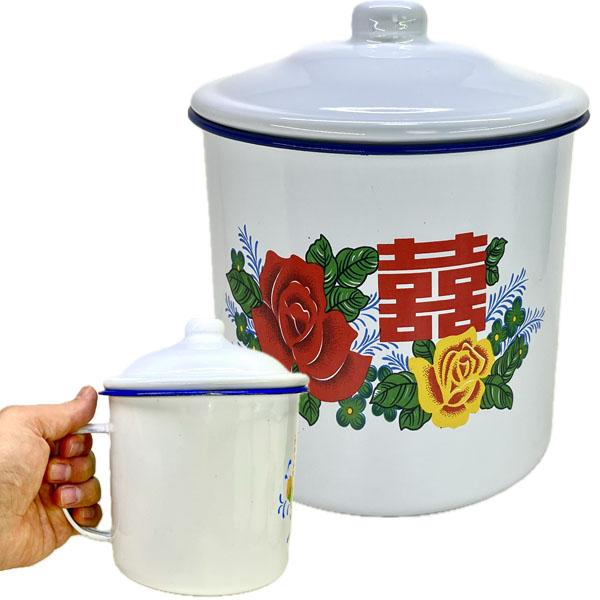 ホーローマグカップ12cm中|キャンプ,骨董品,レトロ,フタ,付き,器,グッズ,茶,テーブルウェア,中国,中華街,アジアン,雑貨