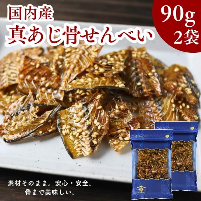国産 真あじ 骨せんべい 180g【 お得 な 90g × 2袋 セット 】送料無料 カルシウム 栄養 おやつ 酒の肴 ビール おつまみ 国内産 小魚珍味 魚の骨 小魚せんべい