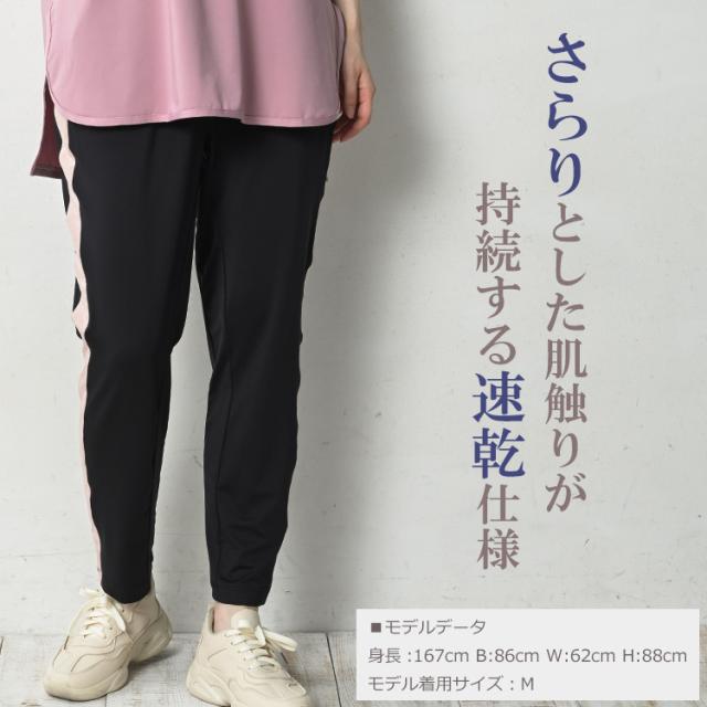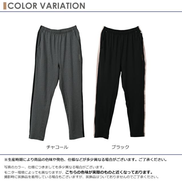 伸縮性が高く動きにフィットする サイドラインパンツ。 生地はさらりとした 肌触りが持続する吸汗速乾仕様。 サイドラインがスッキリ魅せを後押しして 日常使いでも重宝するフィットパンツです。 |
