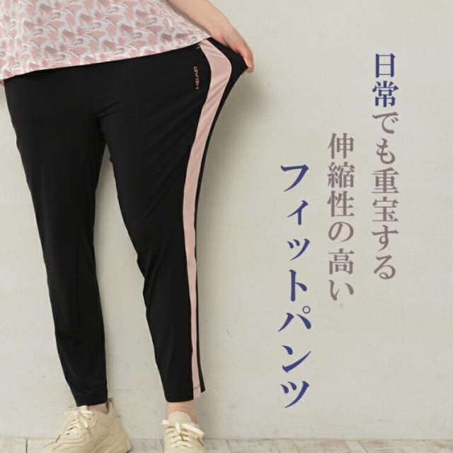大きいサイズ レディース フィットパンツ サイドライン メール便対応 ウエストゴム UVカット スポーツウェア ボトムス HEAD M/LL/3L/4L/5L ゆったりサイズ ぽっちゃり女子 プラスサイズ