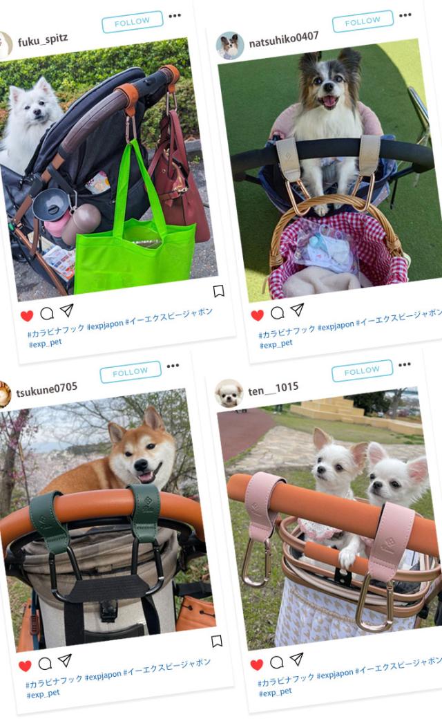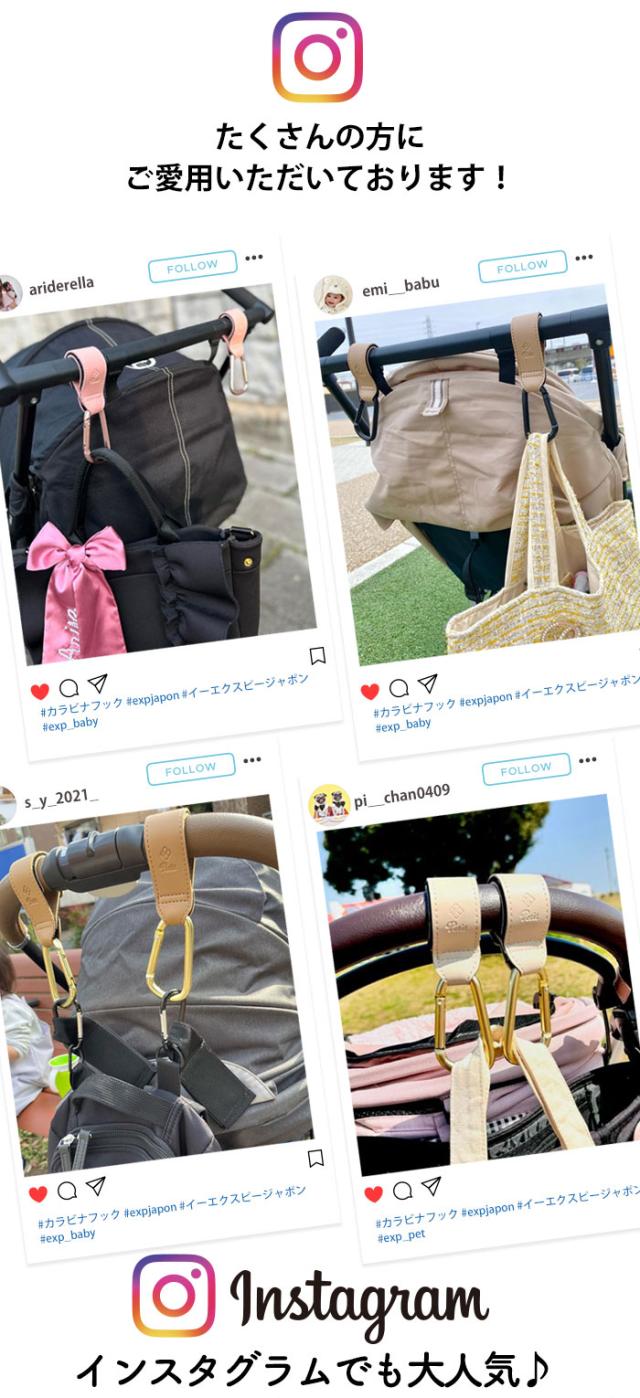 e.x.p.Petit ベビーカーフック カラビナフック 2個セット 出産祝い バギーフック ペットカート ベージュ ピンク ブラック ベビーカー フック ママ ギフト プレゼント おしゃれ 荷物掛け ペットバギー ペット バギー グッズ エアバギーフック イー・エクス・ピー・プティ