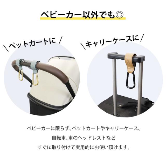 お祝いに人気のベビーカーアクセサリー くすみカラー カラビナタイプの荷物フックでロック防犯 赤ちゃん おでかけ ドッグカート 買い物 ゴルフ ハンドルフック 旅行 ホルダー 革