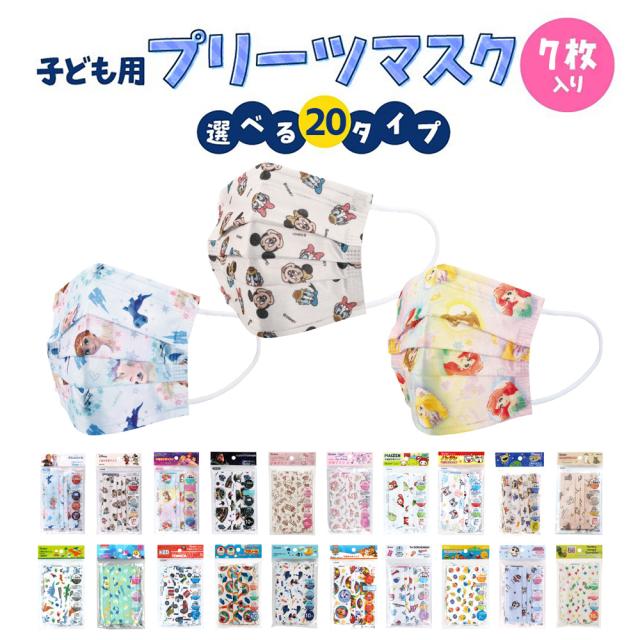 マスク こども 子ども キッズ キャラクター こどもマスク 子供用 不織布 プリーツ 7枚入 全20種 ディズニー 小さめ 男の子 女の子 息がしやすい グッズ 耳が痛くない かわいい 推し活 推し活グッズ