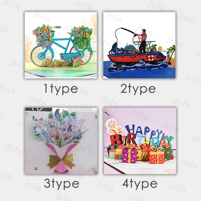 ●4type 開いて楽しいポップアップ式グリーティングカードです。