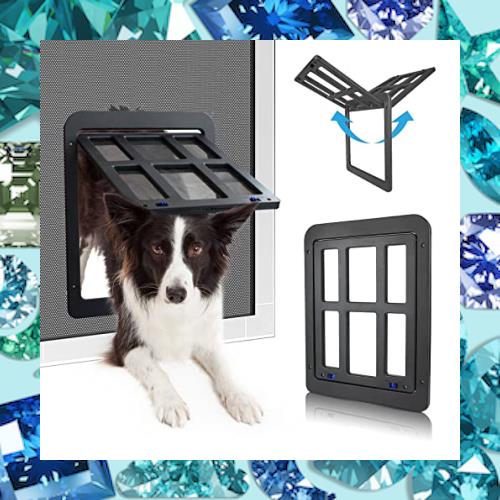 PETLESO犬ドア ペット用網戸ドア 網戸用ドア 犬自由に出入の口 ロック可能取付簡単の大型犬用ペットドア (中大型犬用)黒