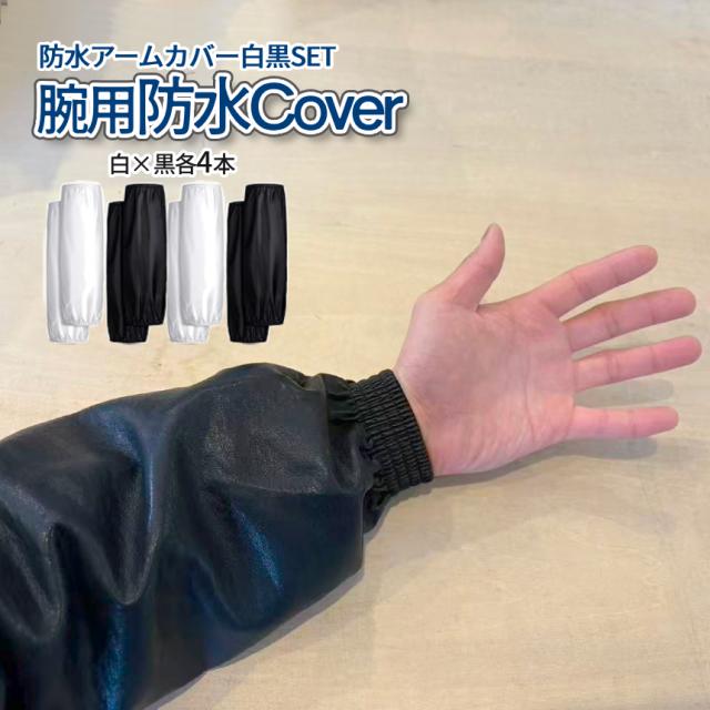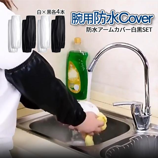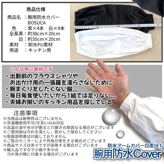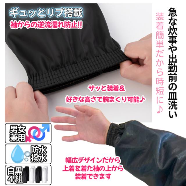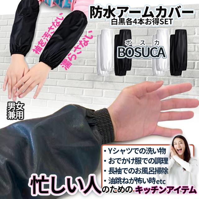 腕カバー 防水 アームカバー ホワイト ブラック キッチン 台所 4組SET 計8枚 腕 袖 袖口 カバー 撥水 掃除 料理 調理 家事 水仕事 事務 作業 制服 洗い場 汚れ 防止 フリーサイズ 男女兼用 2-BOSUCA TOKU 送料無料