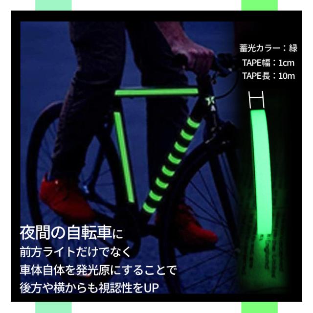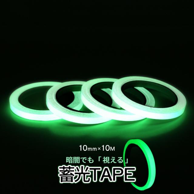蓄光テープ 10mm 10m 光る テープ 蛍光テープ 夜光テープ グロー 蓄光 蛍光 長時間 高輝度 自転車 ヘルメット 室内 屋外 防災 防犯 対策 階段 非常用 夜間 暗闇 目印 事故 防止 CHITAPE-10 送料無料