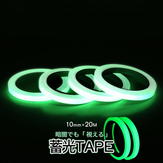 蓄光テープ 10mm 10m 2個セット 光る テープ 蛍光テープ 夜光テープ グロー 蓄光 蛍光 長時間 高輝度 自転車 ヘルメット 室内 屋外 防災 防犯 対策 階段 非常用 夜間 暗闇 目印 事故 防止 2-CHITAPE-10 TOKU 送料無料