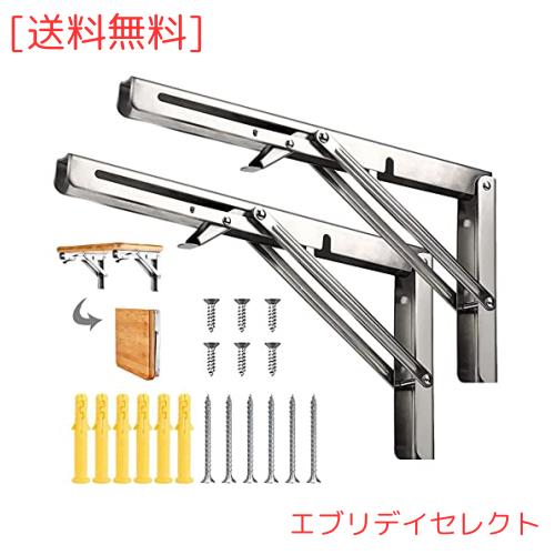 JJ Boom 棚受け 金具 L字型 ステンレス 鋼折りたたみ 式 棚 受け 金具 折り畳み金具 ,省スペースのDIY折りたたみテーブル金具取付ねじ付