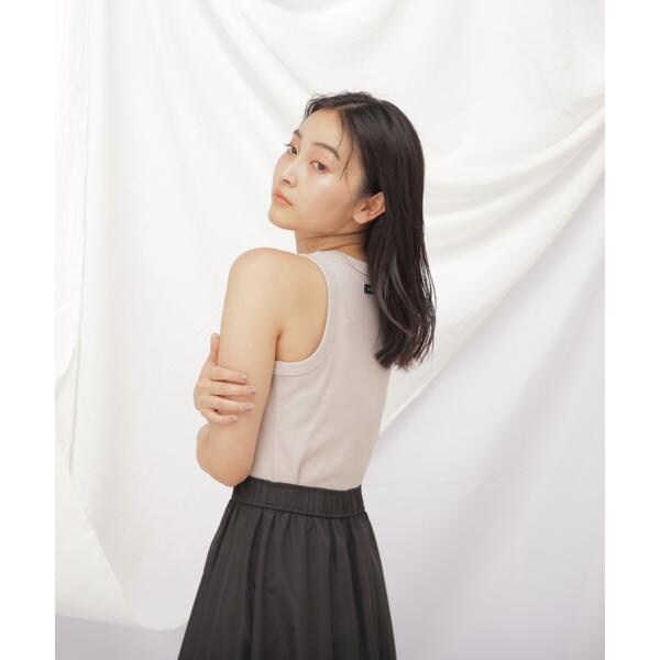 オリジナルテレコ素材で仕立てたリブタンク。オーガニックコットンを使用、インナーが響きにくい厚みです。脇の肉感や肩や背中を華奢に見せるカットティングに拘った、アメリカスリーブ。小さめの「JILL by JILL STUART」のロゴ刺しゅうを素材と同色にしてさり気なく・・。ボトムにINした時もすっきりとした丈感です。ジャンパースカートインも、1枚着としても大活躍でき、ベーシックカーディガン(店舗商品番号1254160010)を揃えて、アンサンブルでも着られます。※撮影時照明の関係により、色味が違って見える場合がございます。またパソコン・スマートフォンなどの環境により、若干製品と画像のカラーが異なる場合もございます。予めご了承ください。商品の色味は、商品単品画像をご参照下さい。※商品画像はサンプルのため、色味やサイズ等の仕様に変更がある場合がございますので、予めご了承ください。