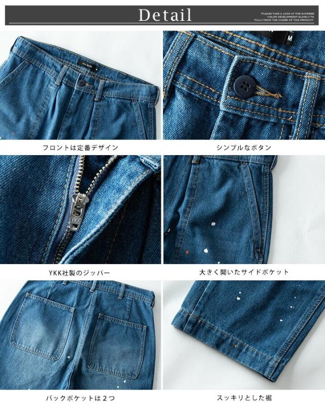 商品情報: テーパードパンツ ペイント キナリ ジーンズ ワイド メンズパンツ 春物 春 全3色 FLLP22−04 Gパン シンプル ルーズ ペンキ加工 綿100 M L インディゴ ジーンズパンツ 大きいサイズ メンズファッション ズボン パンツ バギーパンツ 無地 ドット 水玉 カジュアル アメカジ ストリート 裏地無 プレゼント ギフト おしゃれ ジェネレス GENELESS ボトムス ブルー 綿