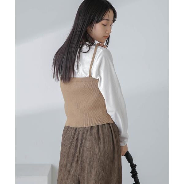 ・ニットビスチェとシンプルなロングスリーブカットソーのセットアイテム