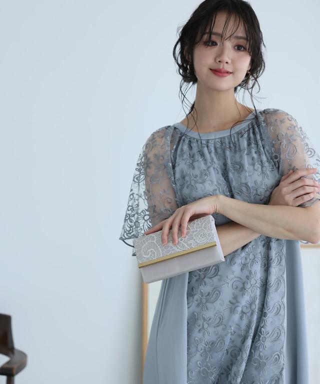 立体的なケミカルレースとサテン素材の組み合わせが上品で華やか。