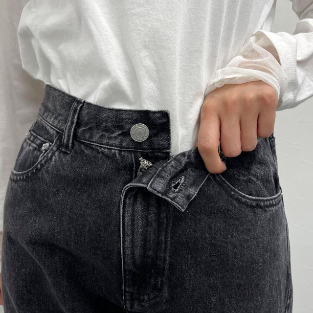 ・ハイウエストのストレートデザインで脚長効果も!