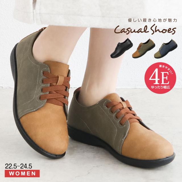 コンフォートシューズ レディース 軽量 幅広 4E ゴム紐 スリッポン カジュアルシューズ 履きやすい 軽い 防滑 スニーカー ローカット 女性 母の日 黒 ブラック カーキグリーン 緑 ブルー ブラウン バイカラー 541-87
