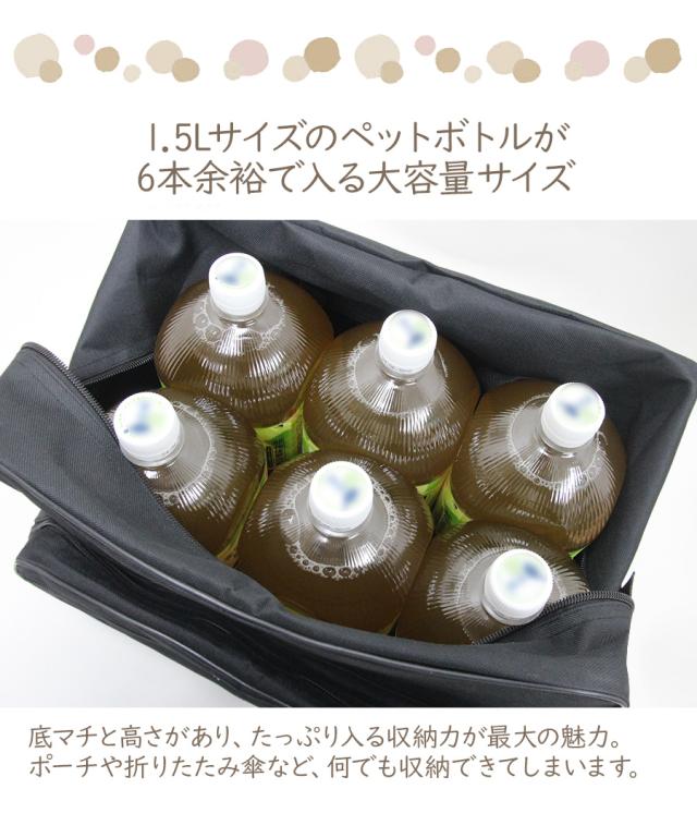 底マチと高さがあり、たっぷり入る収納力が最大の魅力。ポーチや折りたたみ傘など、何でも収納できます。