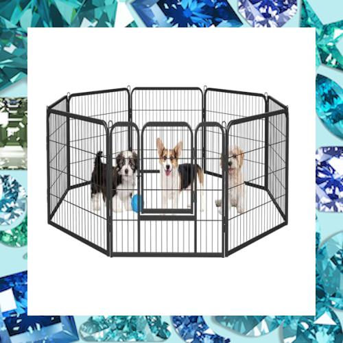 Dinah Aslop ペットフェンス 中大型犬用— ペットケージ パネル8枚 ペットサークル 四角ポール 折り畳み式 ペットフェンス ゲージ トレー