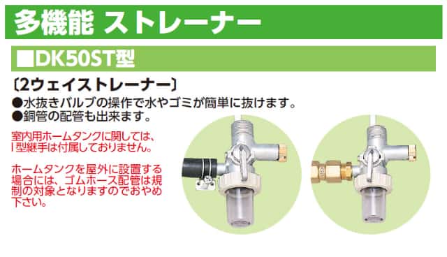 - 送油と水抜き機能を集約した2Wayストレーナー付き。