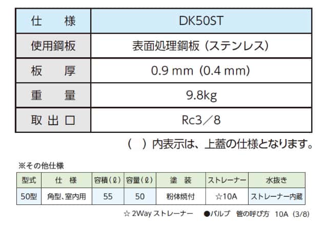 ダイケン 室内用ホームタンク50型 DK50ST 容積55L 容量50L 屋内用 灯油タンク 角型 オイルタンク 2ウェイストレーナー ワンタッチキャップ付き