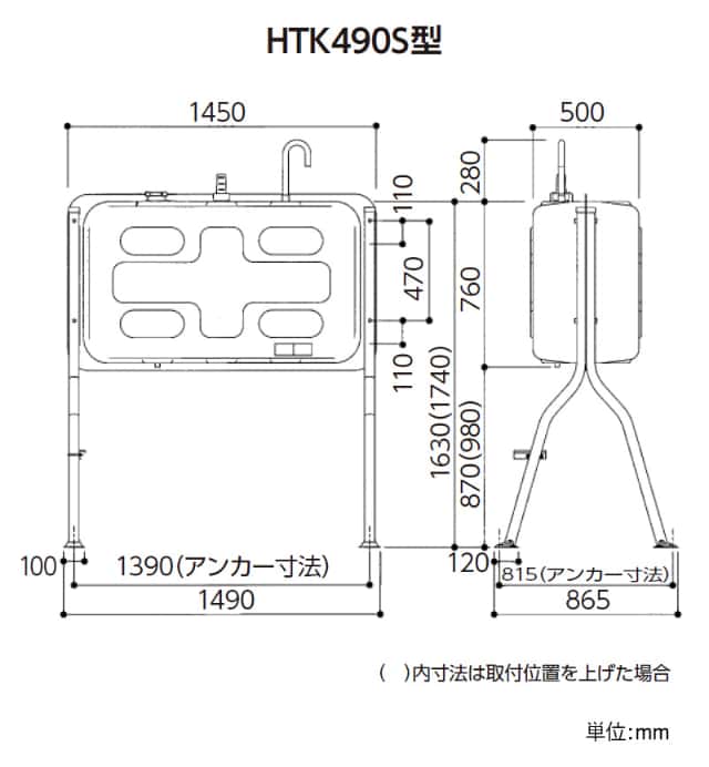 ダイケン 個人宅不可 屋外用ホームタンク490型 標準脚 HTK490S 容積485L 容量436L 室外用 灯油タンク オイルタンク 代引不可