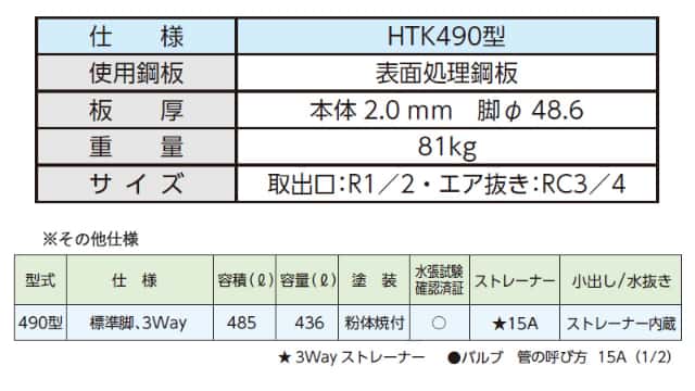 ダイケン 個人宅不可 屋外用ホームタンク490型 標準脚 HTK490S 容積485L 容量436L 室外用 灯油タンク オイルタンク 3ウェイストレーナー付 高さ調整可能 代引不可