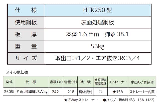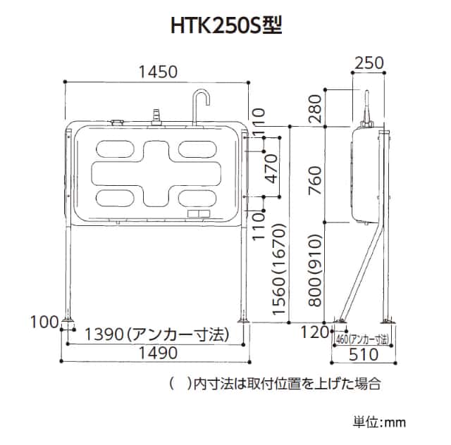 ダイケン 個人宅不可 屋外用ホームタンク250型 片面型 HTK250S 容積242L 容量218L 室外用 壁寄せ 灯油タンク オイルタンク 3ウェイストレーナー付き 高さ調整可能