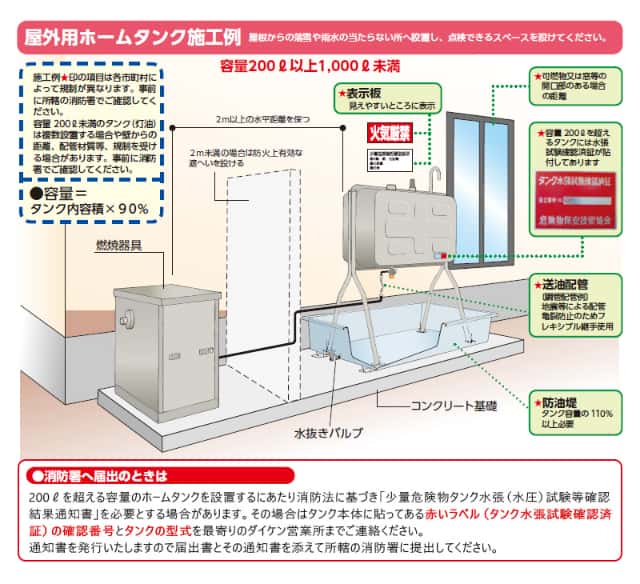 屋外用ホームタンク施工例と消防署への届出について