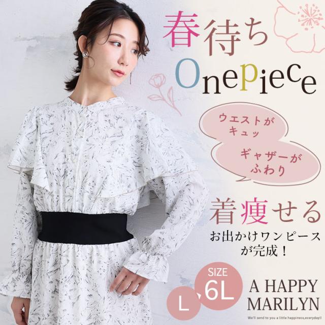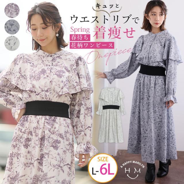 【クーポン利用で40%オフ】 新作 大きいサイズ レディース ワンピース | フェミニン女子集合! ウエストリブで着痩せ 春待ち 花柄ワンピース [249973] LL 3L 4L 5L 6L
