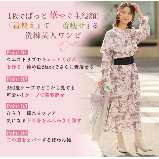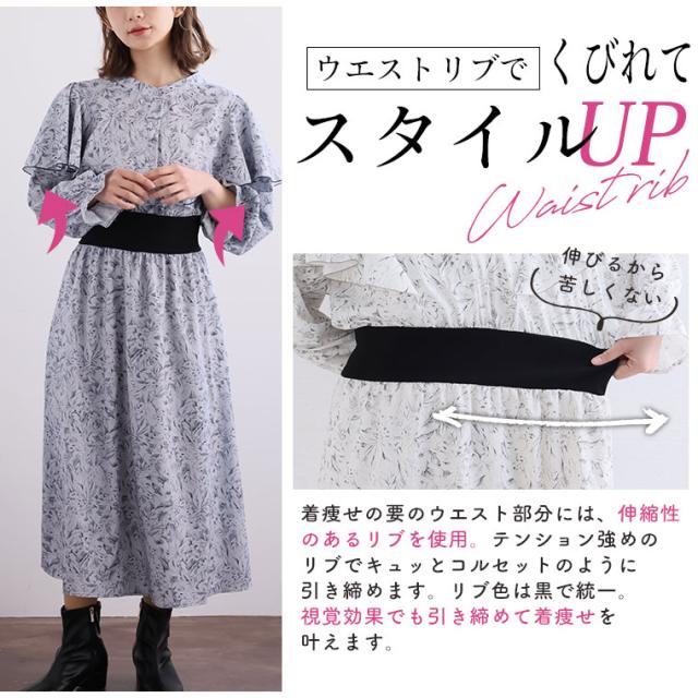 フェミニン女子集合! ウエストリブで着痩せ 春待ち 花柄ワンピース