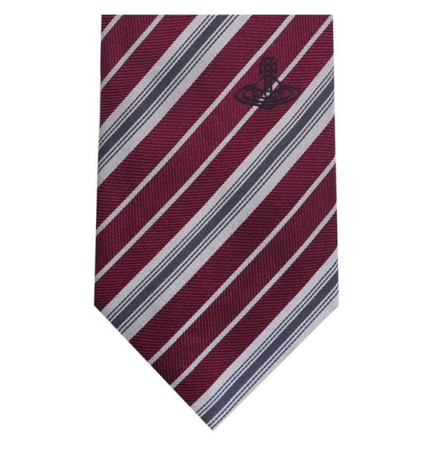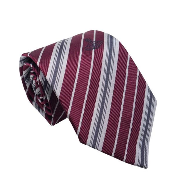 Vivienne Westwood ヴィヴィアンウエストウッド ネクタイ AW2023モデル メンズ ストライプ バーガンディ ロゴ ブランド イタリア製 シルク100% 男性用 クリスマス プレゼント 高級 ブランド品 スーツ【送料無料】
