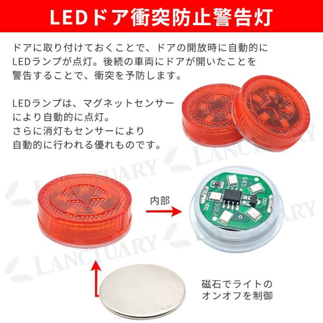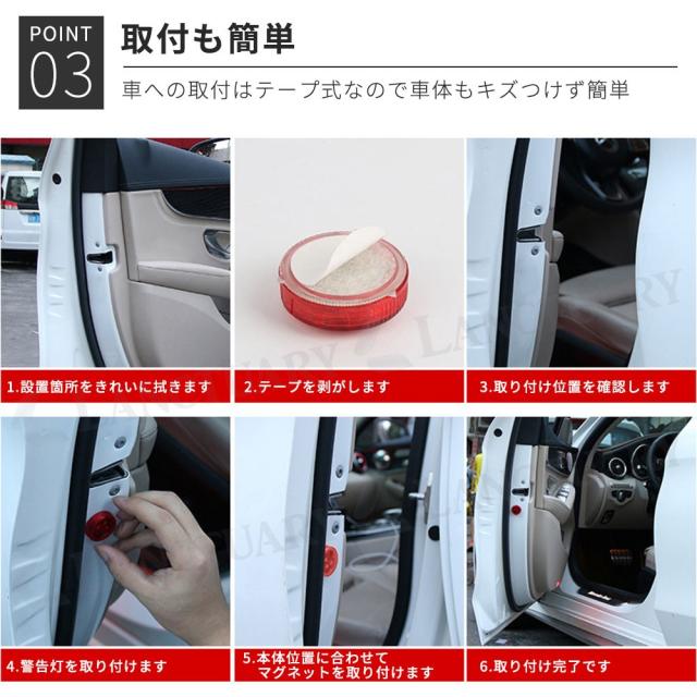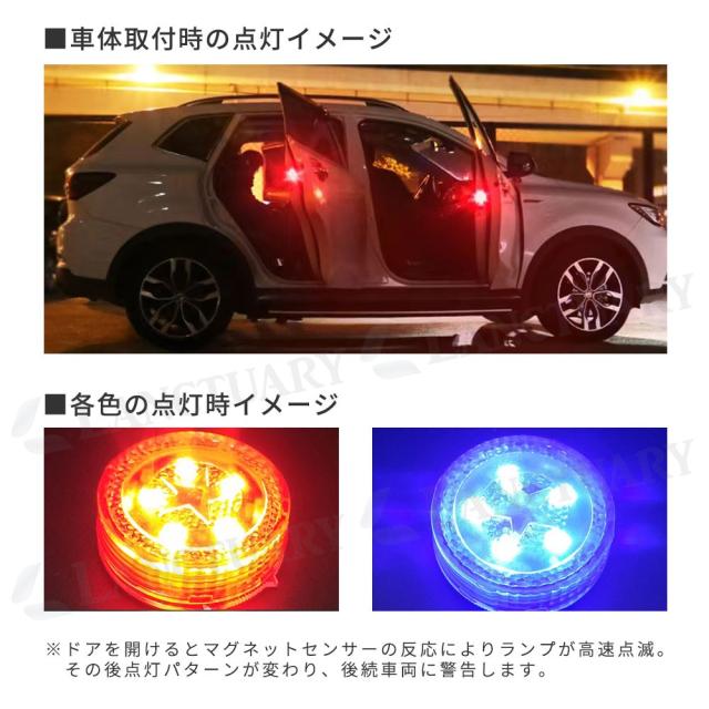 車ドア用LED警告灯(同色)4個セット LEDライト 警告灯 ドアストライカー 車用 マグネット式 ワーニングランプ 安全ランプ 信号ライト ハザードライト 電池式 agesugi_ssp