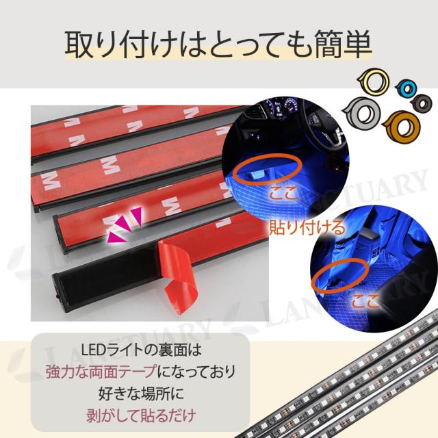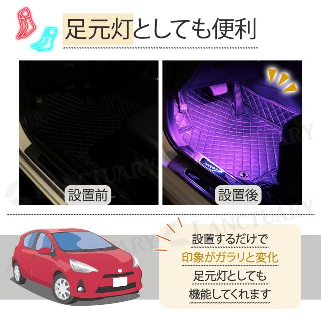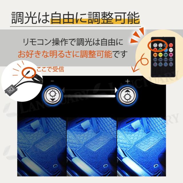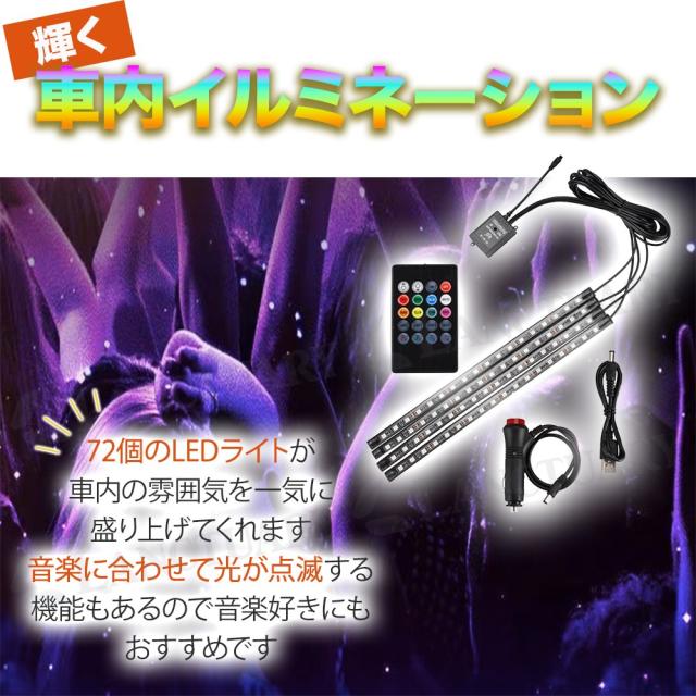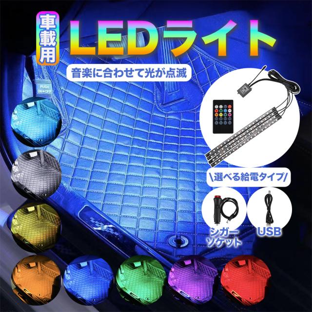 車載用LEDライト シガーソケット USB ドライブ 足下照明 音楽に合わせて光が点滅 調光 リモコン付き 両面テープ 柔軟性 8色 カー用品 車内イルミネーション agesugi_ssp