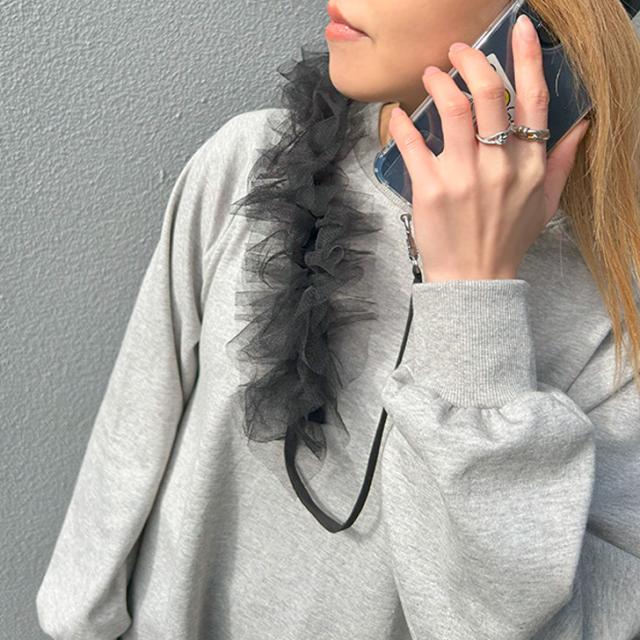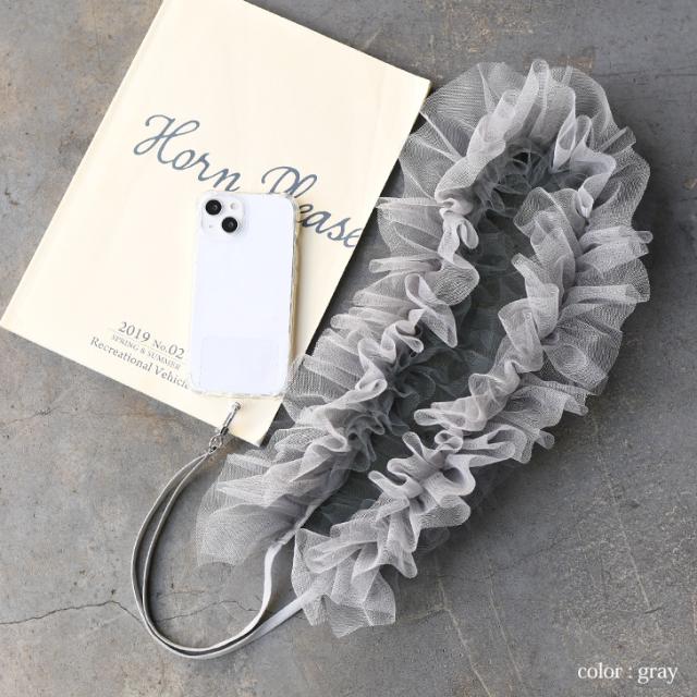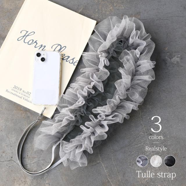 新作 ストラップ スマホ ショルダー チュール 紐 モバイル アクセサリー 雑貨 小物 可愛い 大人 人気 ギャザー iphone Android バレエコア