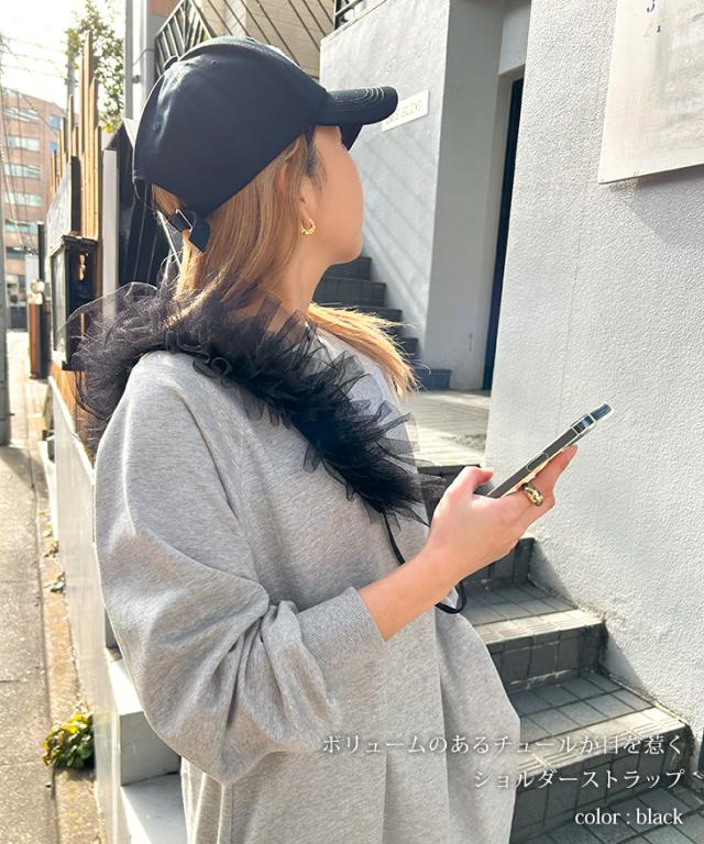 ●ボリュームのあるチュールが目を惹くショルダーストラップ