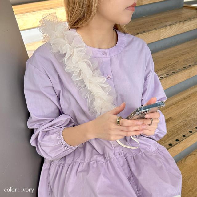 たっぷりのギャザーでふんわり仕立てたチュールアイテム