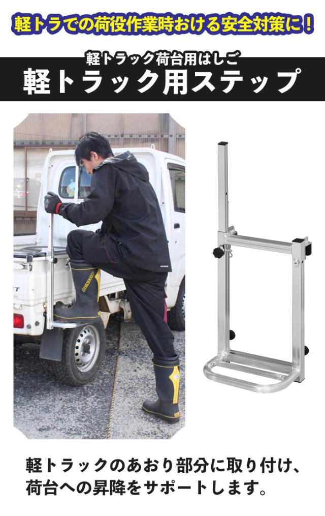 軽トラックの荷台に安全に上がるための昇降ステップ。