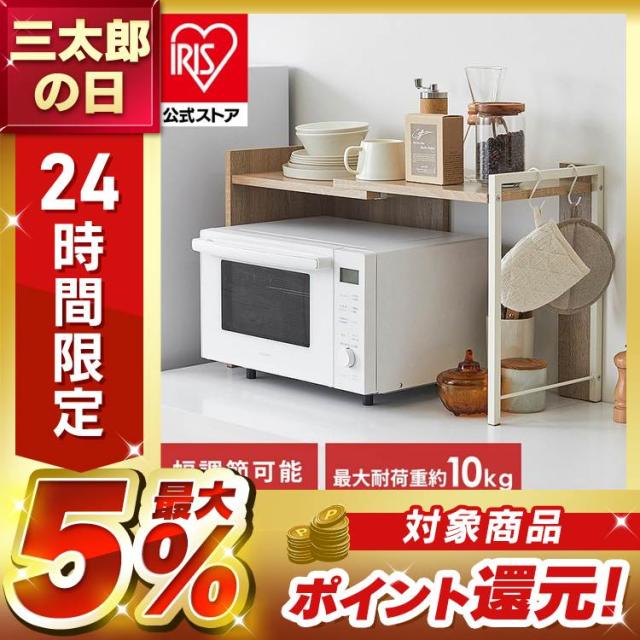 レンジラック レンジ台 伸縮 伸長式 キッチンラック 棚 シェルフ 卓上 スパイスラック キッチン収納 省スペース 北欧 おしゃれ かわいい 一人暮らし 新生活 伸縮レンジ上ラック ホワイト/ライトナチュラル ブラック/アッシュブラウン アイリスオーヤマ