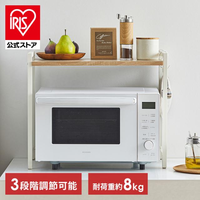 レンジラック レンジ台 キッチンラック 棚 シェルフ 卓上 スパイスラック キッチン収納 省スペース 北欧 おしゃれ かわいい 一人暮らし 新生活 レンジ上ラック ホワイト/ライトナチュラル ブラック/アッシュブラウン アイリスオーヤマ