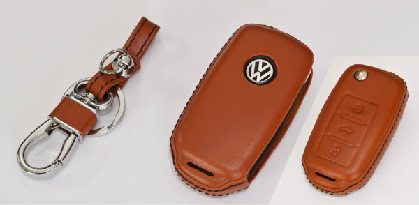 CodeTech LE-BE-004BB ブラウンレザーキーカバー for ザビートル、アップ、ゴルフ5、ゴルフ6、ポロ、ティグアン、トゥーラン