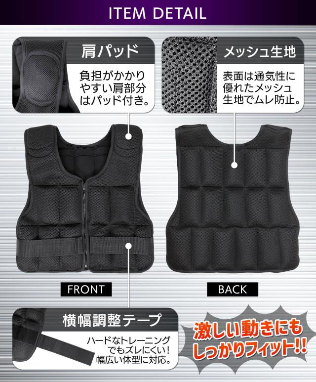 【着脱が簡単で初心者にも使いやすい】ファスナーを閉めてサイドのテープで調節するだけの簡単装着!前後でバランスよく重量を配分できるので、腰や背中に負担がかかりにくくなっており、ウエイトベストを着て普段の生活をするだけでも体力・体幹の強化につながります。負担のかかりやすい肩部分にはパッド付き!