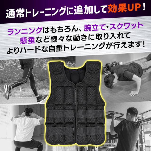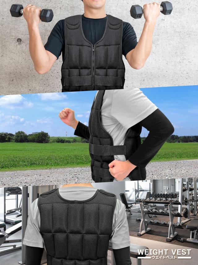 【重量を調節できるウエイトベスト】自重で足りなくなった方や、効率よくトレーニングしたい方にオススメなウエイトベスト!多くのウエイトベストが10kgから始まりますが、当商品はベストのみの重さから始められ、可動域を邪魔しないシンプルなデザインなので初心者にもオススメのウエイトベストになっております。
