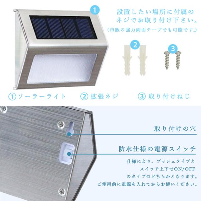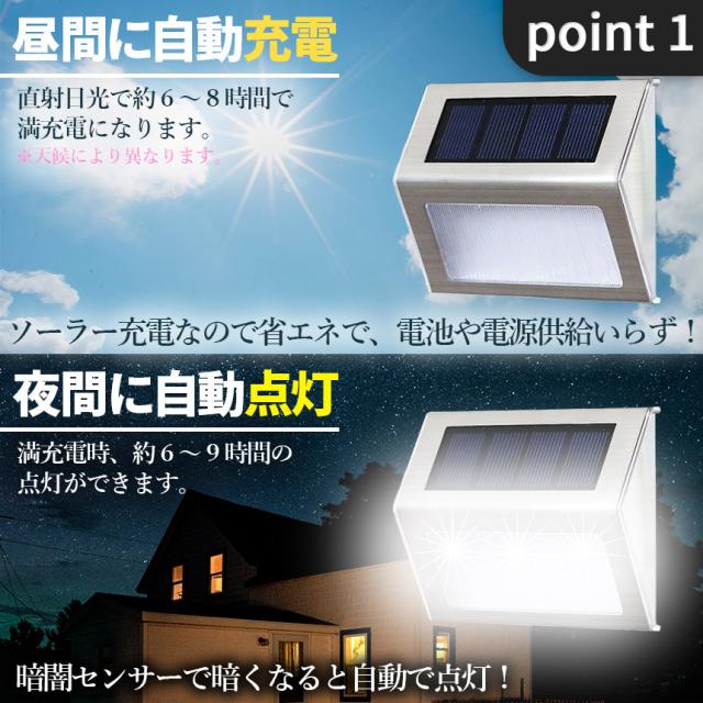 ソーラーライト センサーライト 4個セット ステップライト ガーデンライト アウトドア ソーラー 暗闇センサー 明暗センサー 照明 IP44防水 防犯 階段 庭 外壁