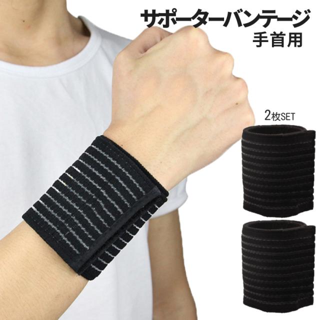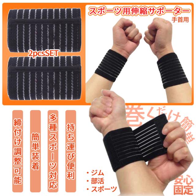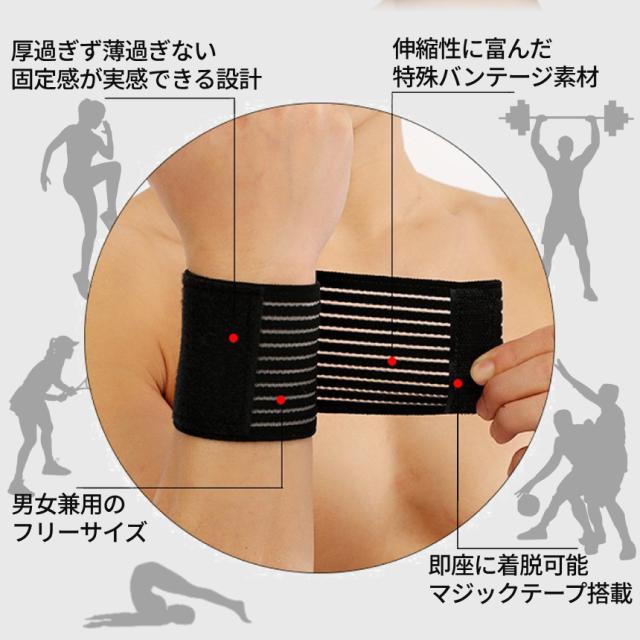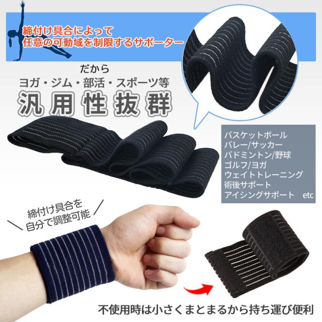 サポーター 40cm 2枚 左右 テーピング 伸縮 バンテージ マジックテープ 手首 リストバンド 巻く 簡単 装着 汎用 手 足 スポーツ トレーニング ジム 部活 ウェイトトレーニング RISSAPO 送料無料