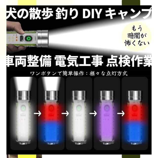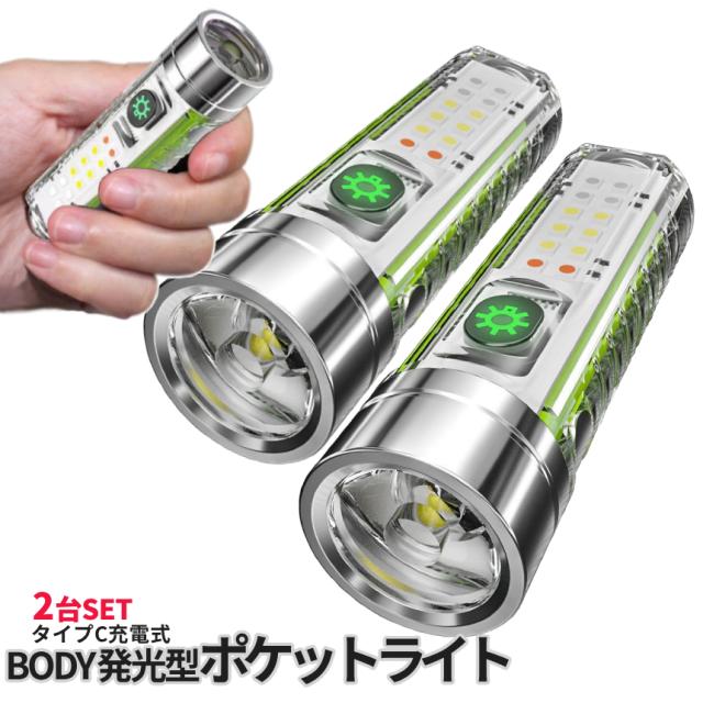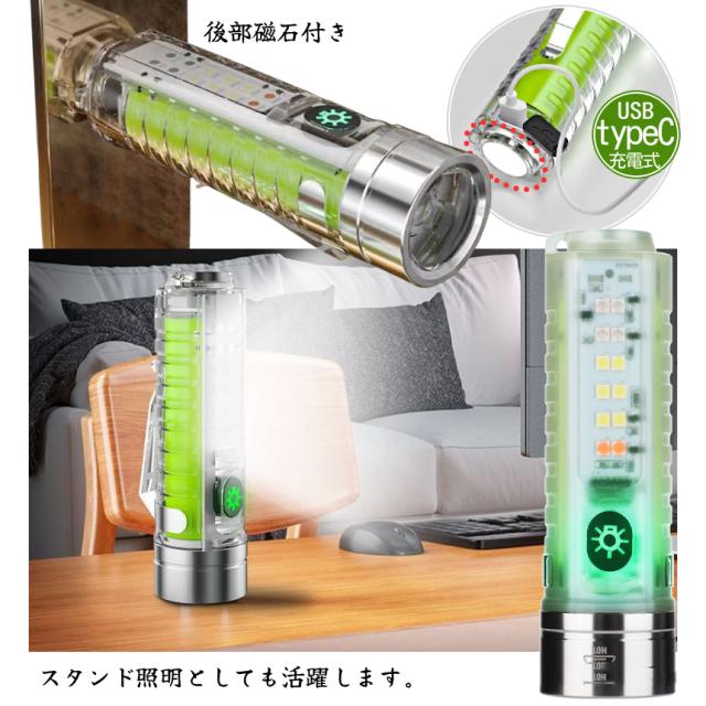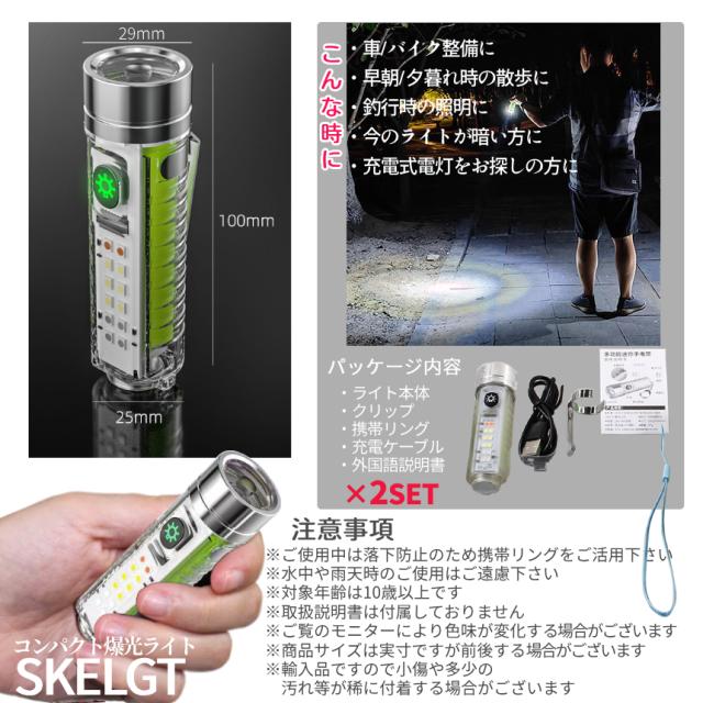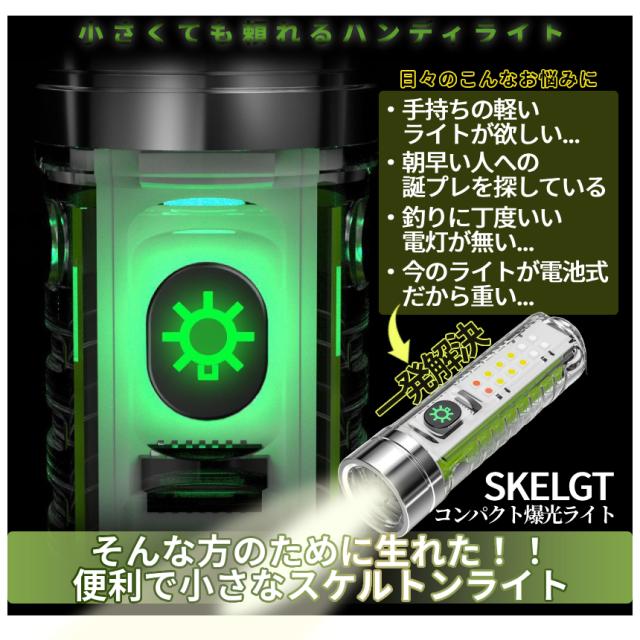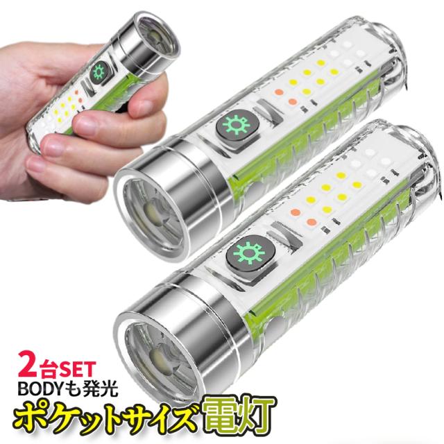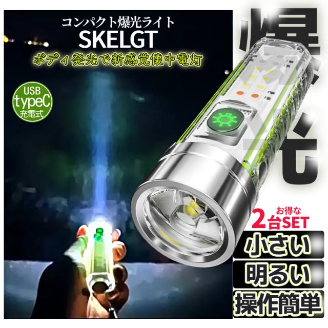 LEDライト 懐中電灯 充電式 ライト 2個セット USB タイプC スケルトン ハンディライト 多モード 爆光 LED 作業灯 磁石 マグネット ミニ 小型 ポケット サイズ コンパクト スタンド 自立 照明 散歩 夜 暗闇 COB typec DIY 2-SKELGT TOKU 送料無料