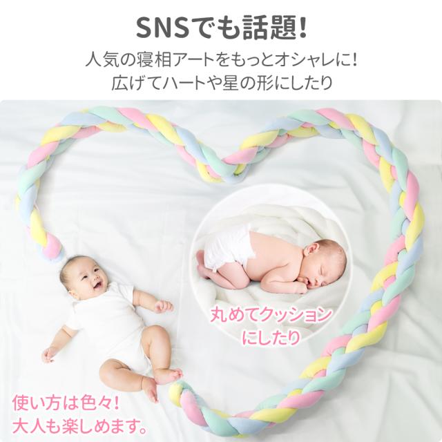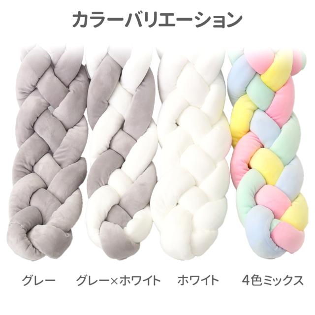 ベビーガード ベビーベッドガード クッション 赤ちゃん用 赤ちゃん クッションベビーガード 転落防止 ケガ防止 クッションベッドガード ベッドアート SNS オシャレ おしゃれ かわいい 手洗い可能 寝相アート グレー グレー×ホワイト ホワイト 4色ミックス 4本編み 送料無料