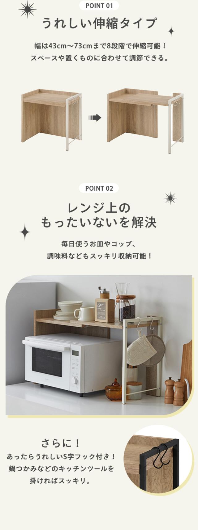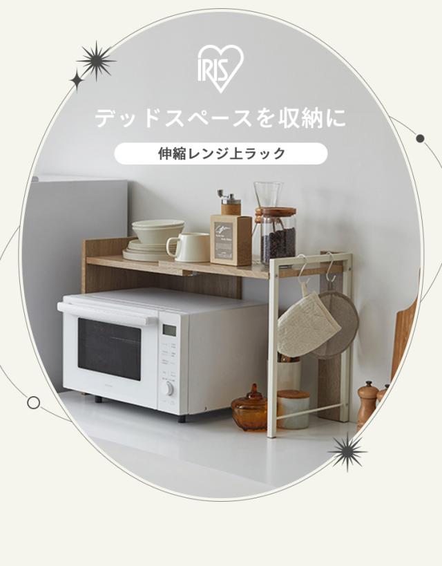 レンジラック レンジ台 伸縮 伸長式 キッチンラック 棚 シェルフ 卓上 スパイスラック キッチン収納 省スペース 北欧 おしゃれ かわいい 一人暮らし 新生活 伸縮レンジ上ラック ホワイト/ライトナチュラル ブラック/アッシュブラウン アイリスオーヤマ 送料無料